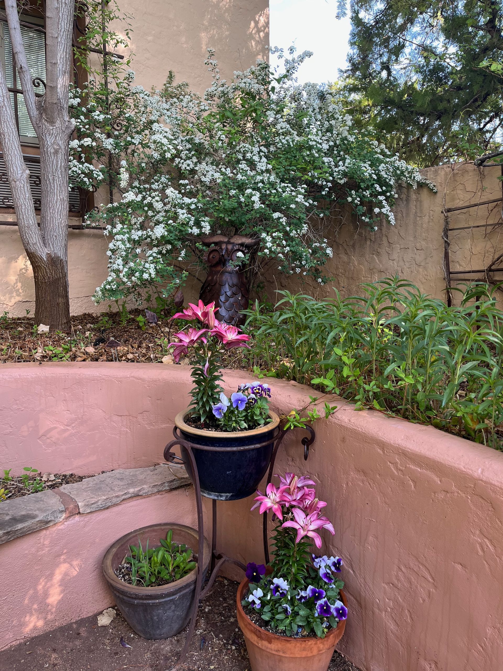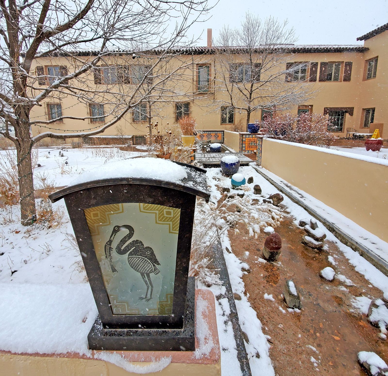 We can’t wait to see the gardens trimmed with snow. La Posada usually catches a few storms in late January thru March. Take a look at this photo, flashing back to a 2021 winter storm.