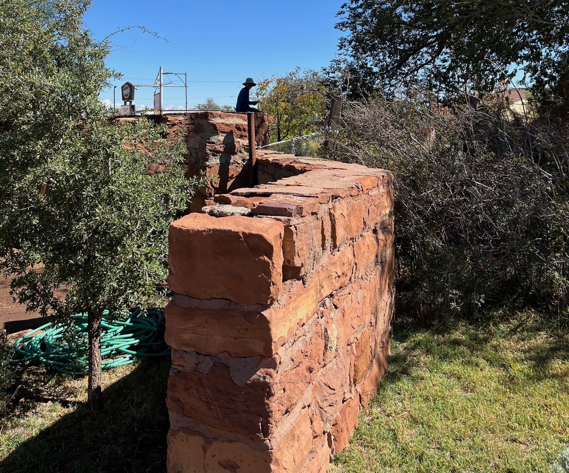 The Saltbush, Apache Plume, Banana Yucca, Agave, Juniper, Texas Live Oak and Cypress in this area provide contrast to the blue winter sky and highlight the sandstone wall which mostly surrounds the property. This hardy Xeric habitat is irrigated sparingly, relying on drip and bubbler systems.This native area provides seeds and shelter for critters throughout the year.